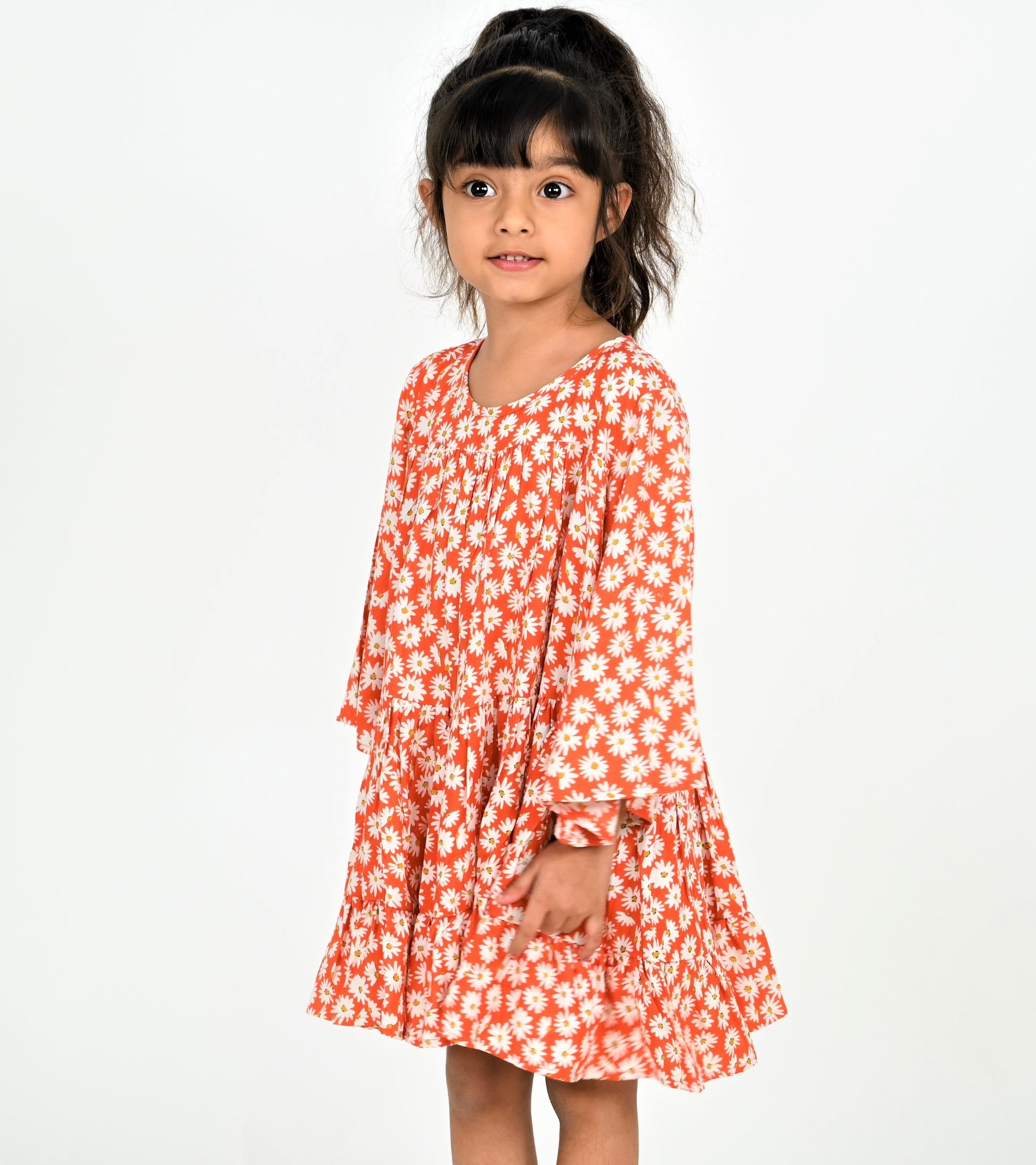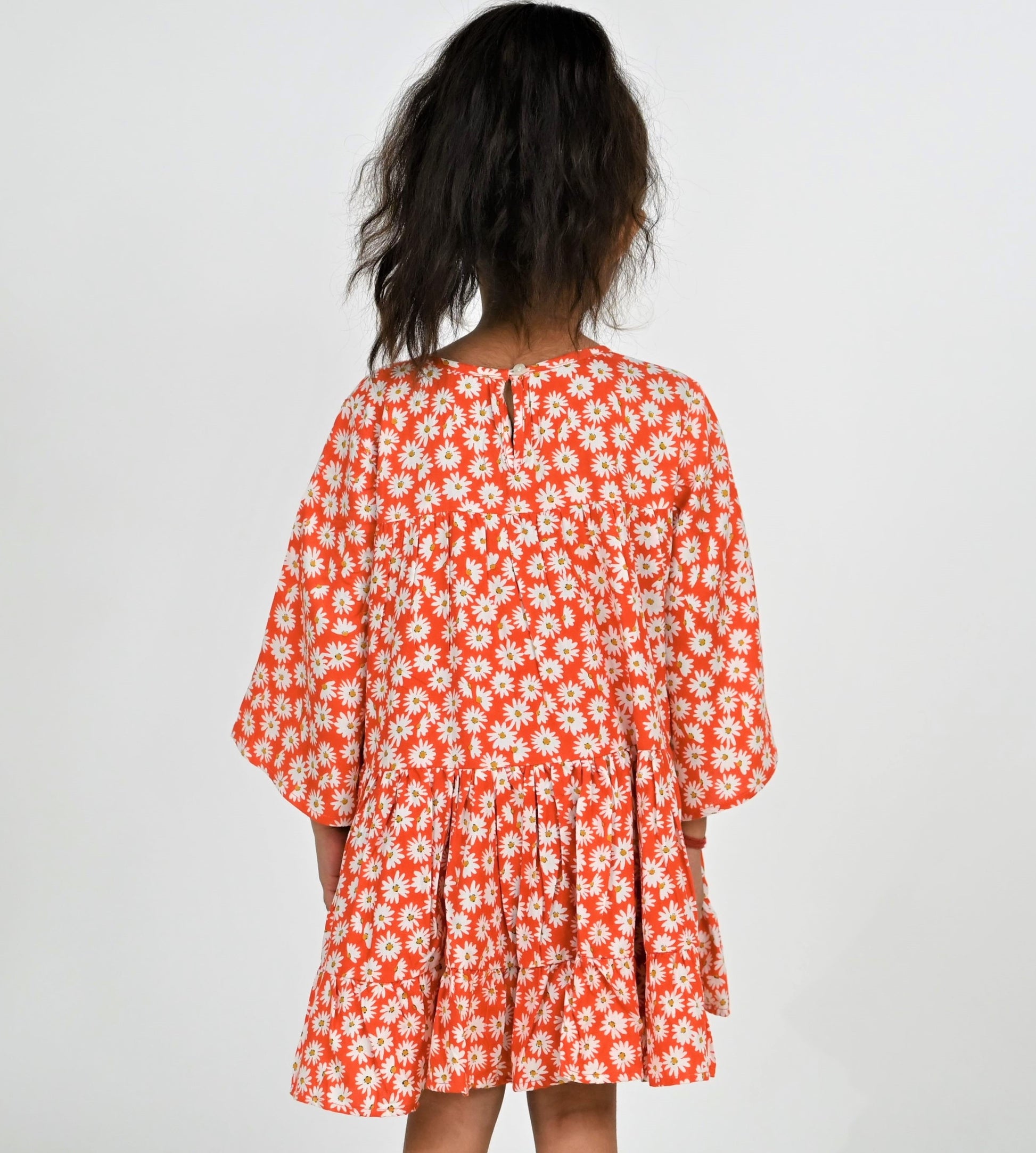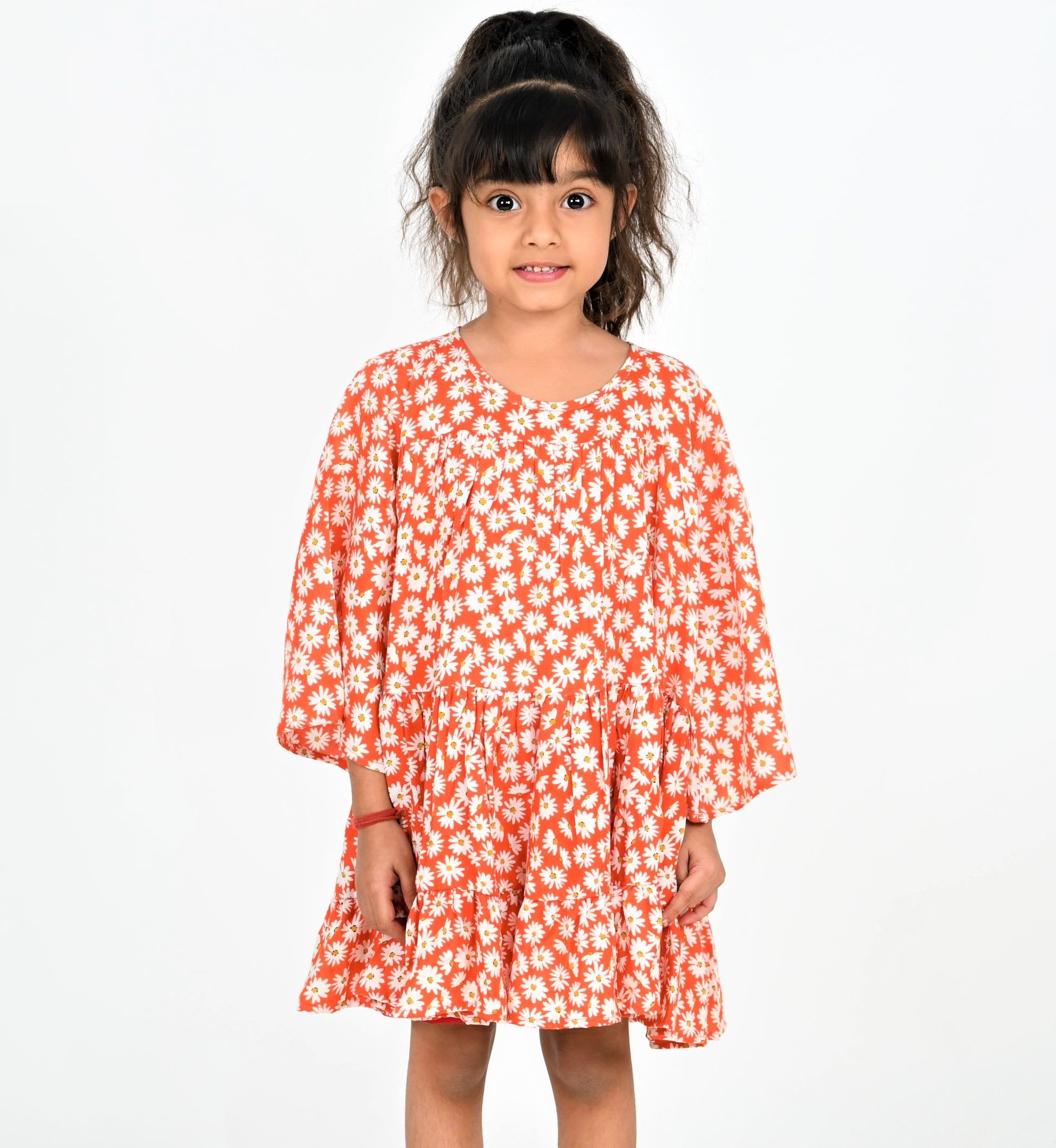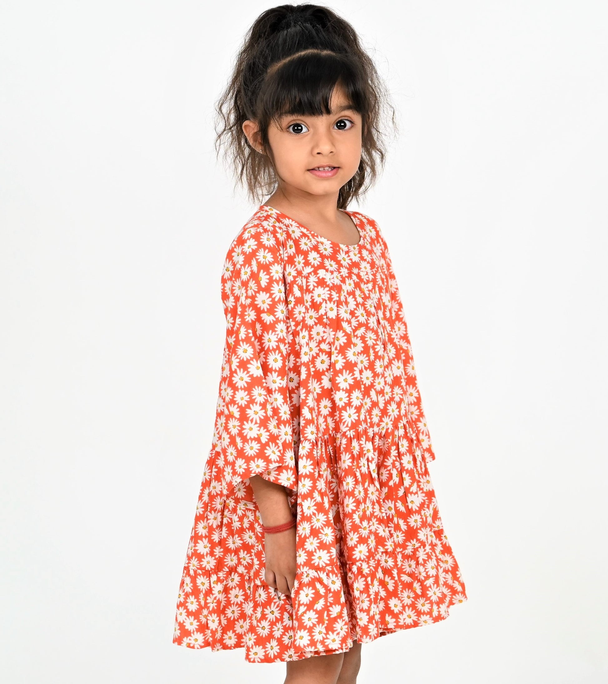 Girls Red-White Daisy Print Dress