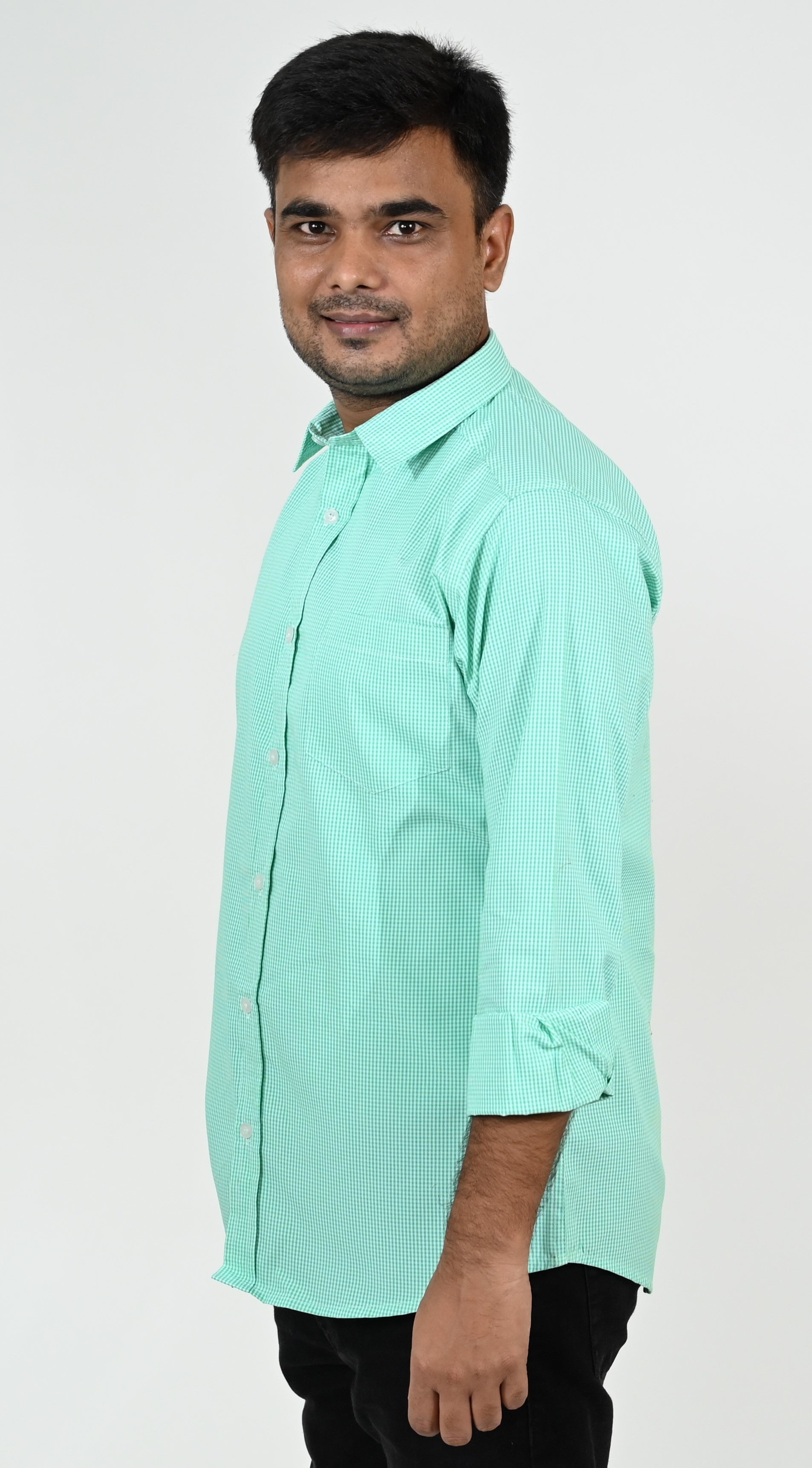 Sizes: XL (Chest Size: 42 in, Length Size: 29 in) L (Chest Size: 40 in, Length Size: 28 in) XXL (Chest Size: 44 in, Length Size: 30 in) M (Chest Size: 38 in, Length Size: 27 in) Checked casual shirt, has a spread collar, long sleeves, button placket, and curved hem